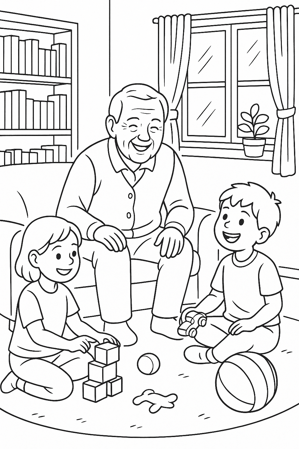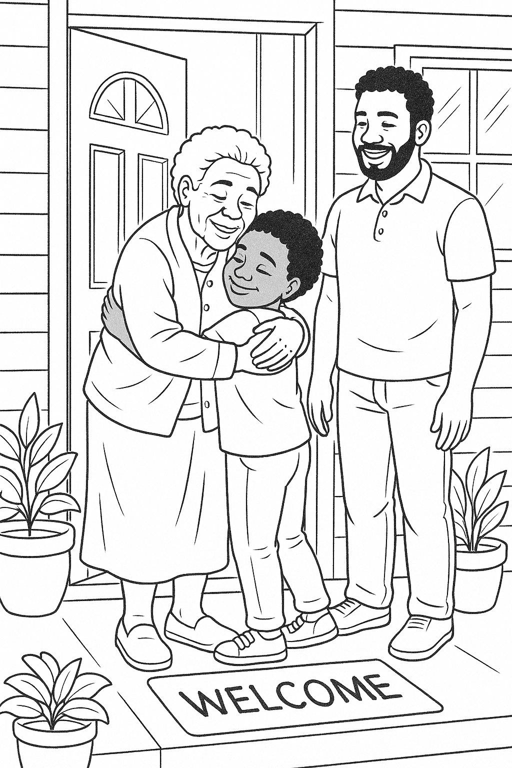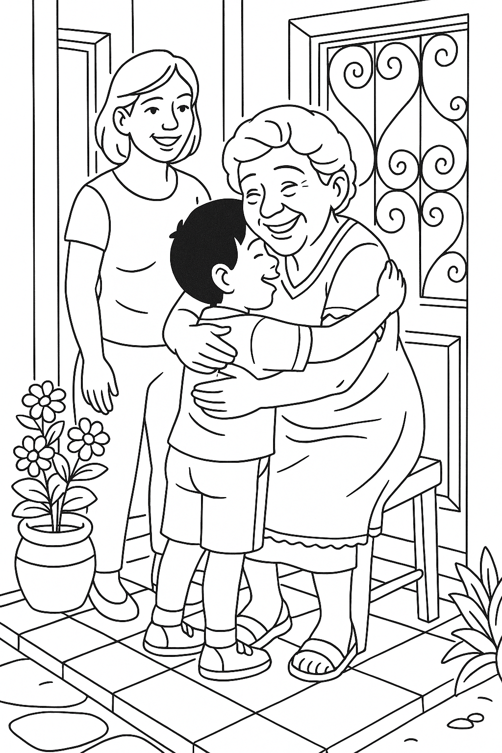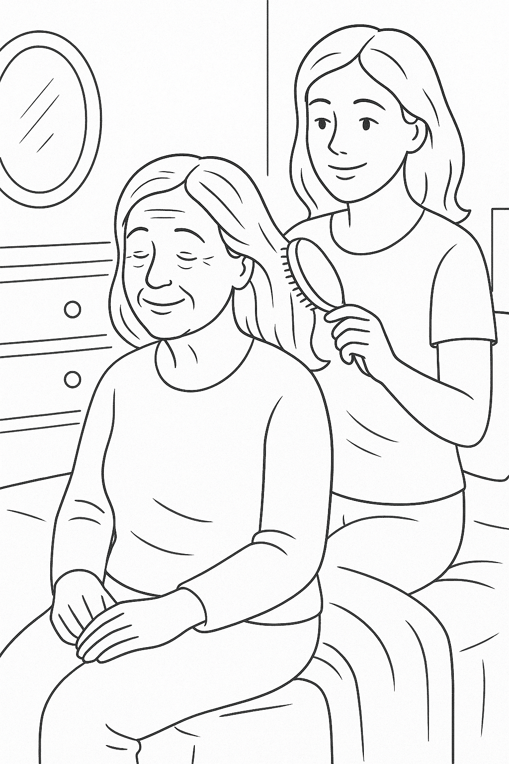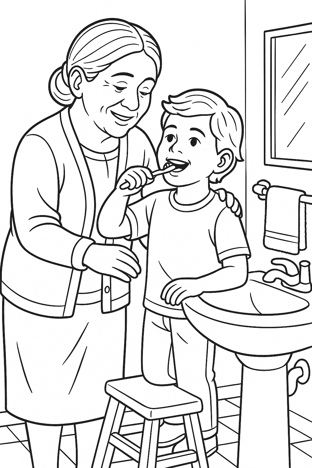 DownloadColoring Page-Grandma Helps with Brushing Teeth (png)