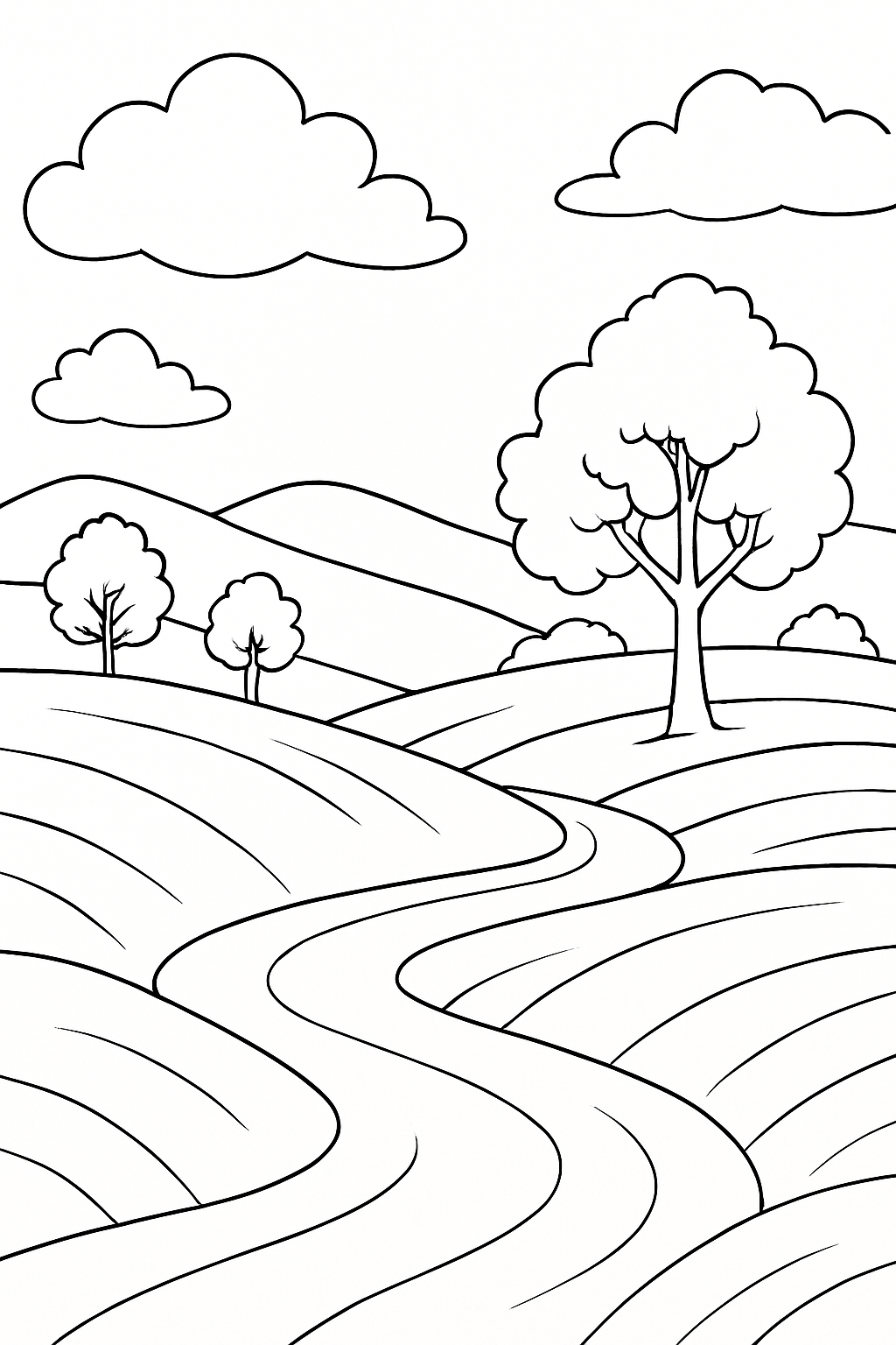 DownloadColoring Page-Rolling Hills and Clouds (png)