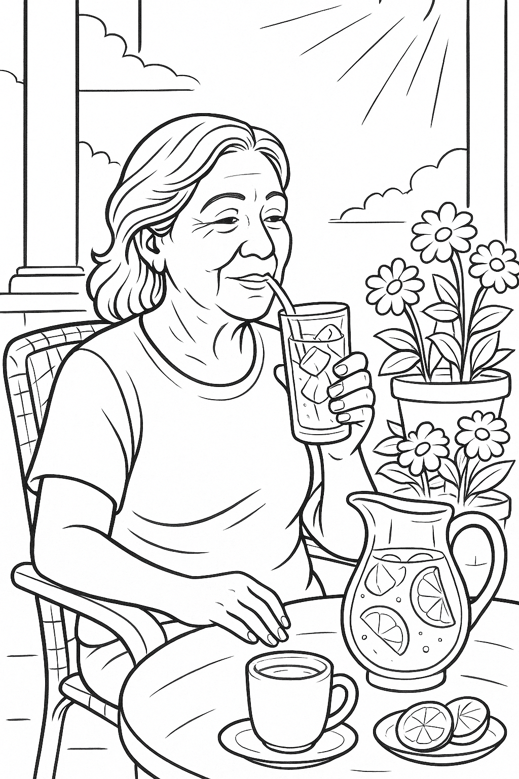 DownloadColoring Page-Enjoying Ice Cold Lemonade (png)