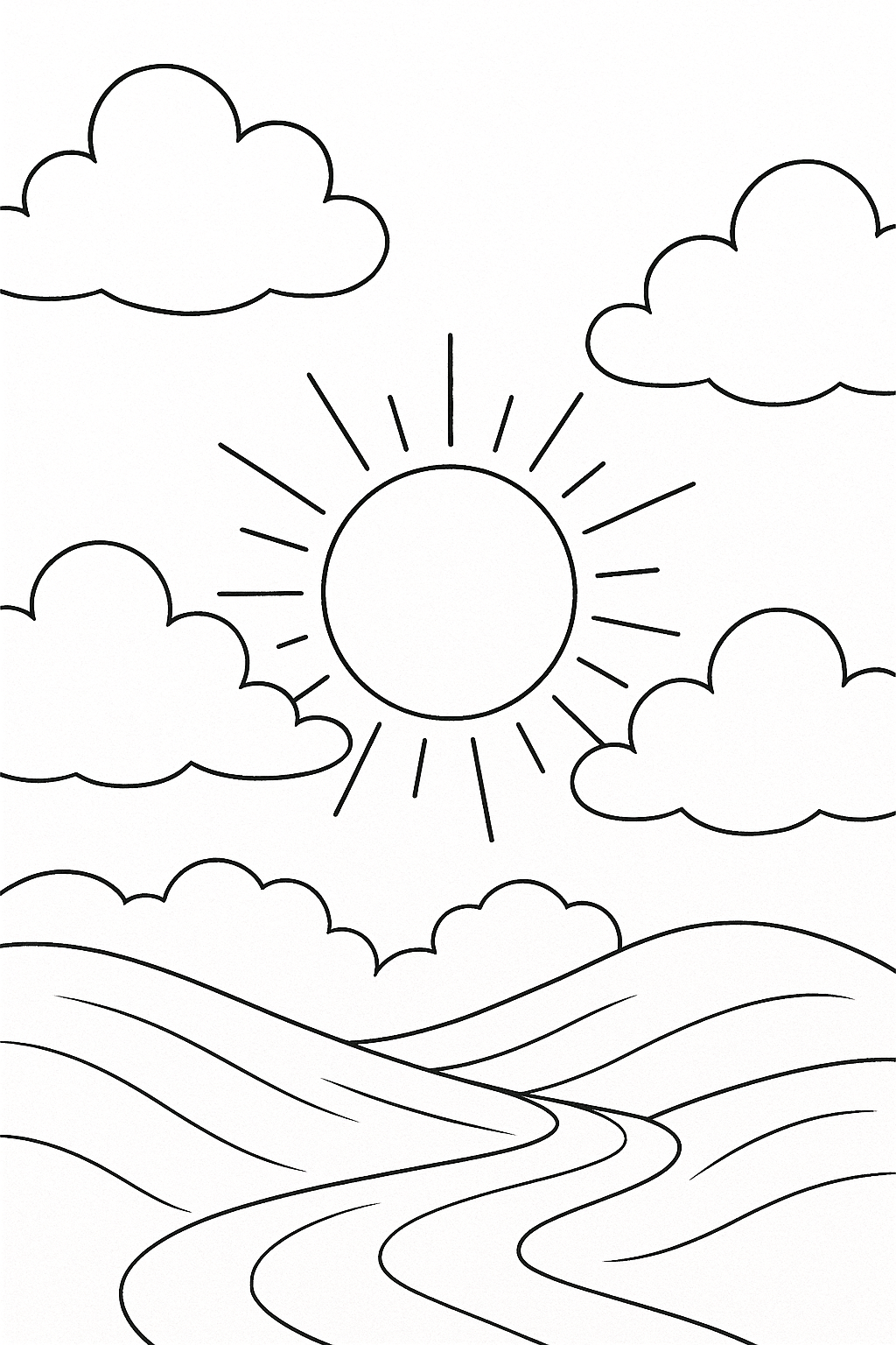 DownloadColoring Page - Rolling Hills and Sunshine (png)