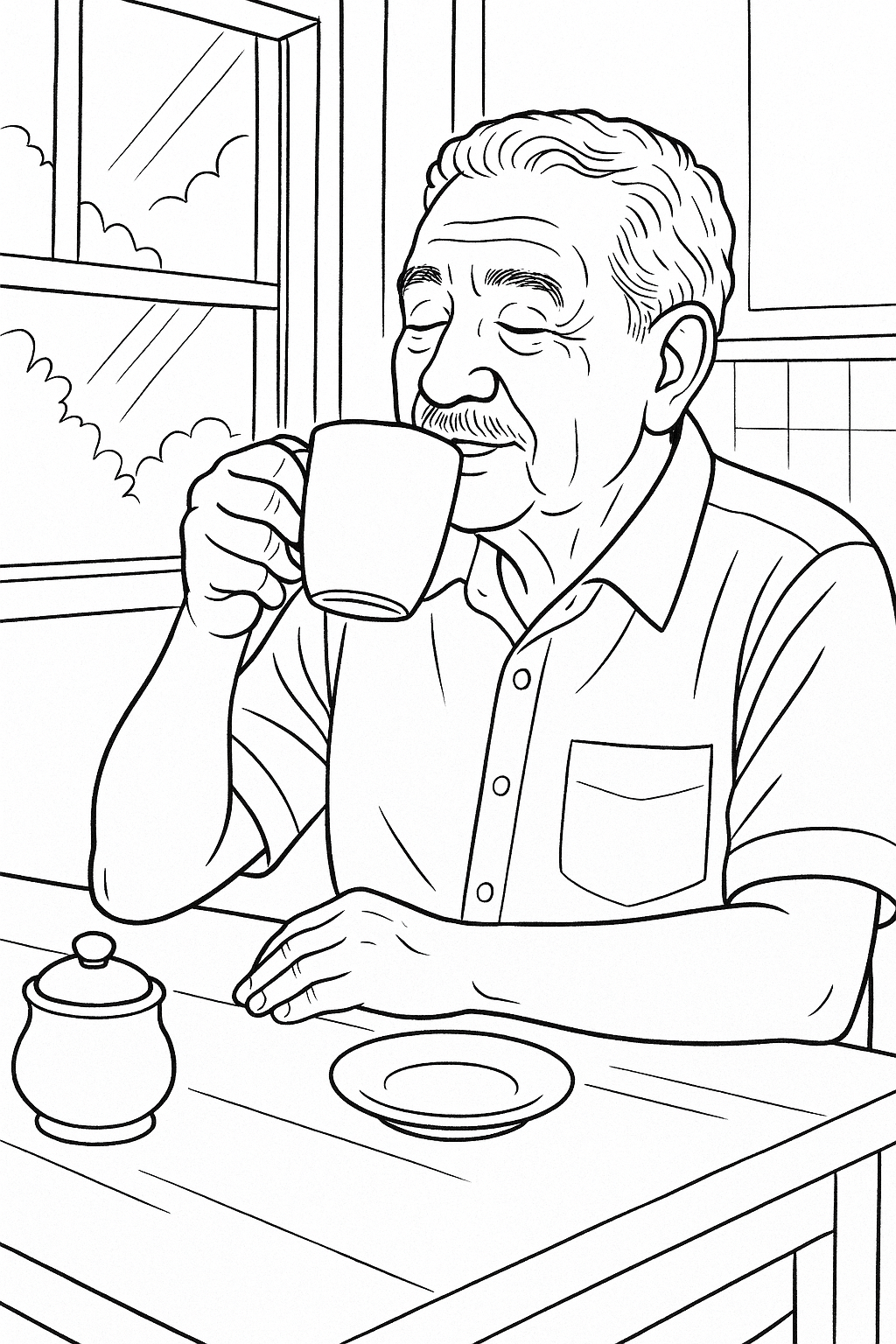 DownloadColoring Page-Having a Cup of Coffee (png)